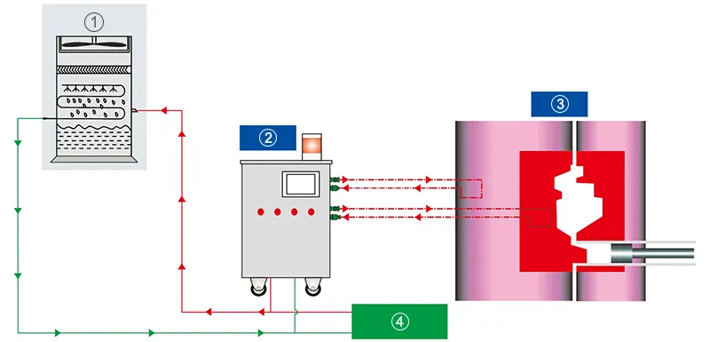 Selecione o meio de resfriamento de acordo com os requisitos de temperatura do molde e o ambiente operacional (por exemplo, água ou óleo de transferência de calor). Aplique filtragem e purificação. Para água, use inibidores de ferrugem para evitar corrosão.